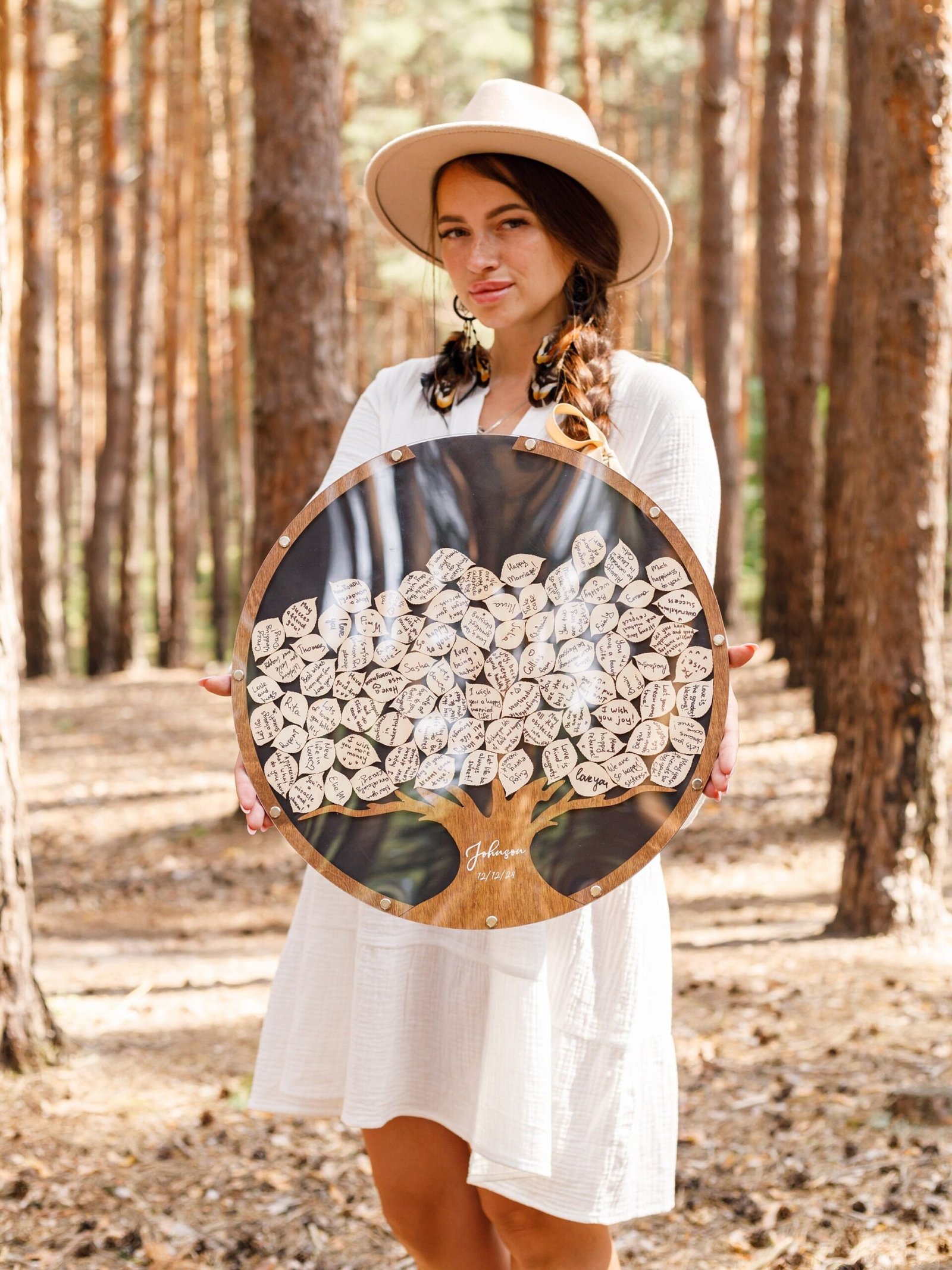 Every signature, note, or loving message becomes a leaf in your growing family tree—an everlasting reminder of the people who stood by you on your wedding day. Crafted from premium wood, it offers a rustic yet refined aesthetic that perfectly complements modern, farmhouse, boho, or vintage-inspired weddings.